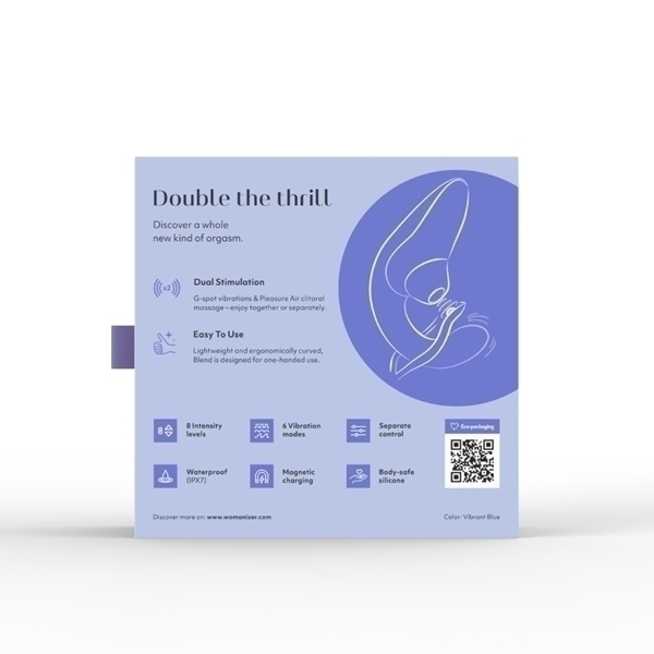 吸引と振動、ダブルの刺激によるオーガズムを「ブレンドオーガズム」と言いますが、このウーマナイザーブレンドはまさにブレンドオーガズム初心者の方にぴったりなアイテムです!●カラー:ヴァイブラントブルー