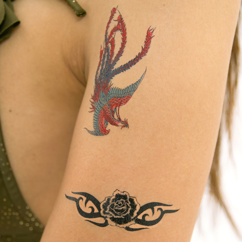 TATTOO(タトゥー)シールで、グッと色っぽく!いつものコスプレ衣装に合わせて、こだわりの箇所に貼り付けるだけ!特殊な素材を使用しているので、皮膚の動きと一緒に伸び縮みします。