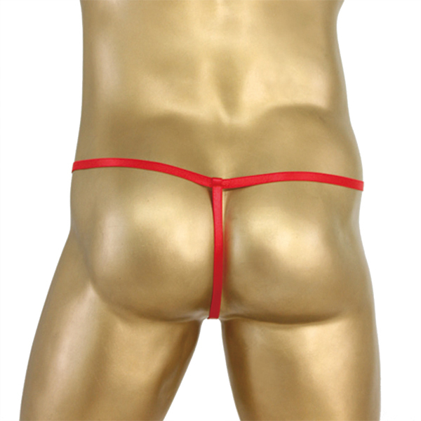 フロントに視線は集中しがちですが、後ろ姿でも極細のGストリング仕様で見事に男らしさをアピール!こちらのカラーは情熱のレッド。