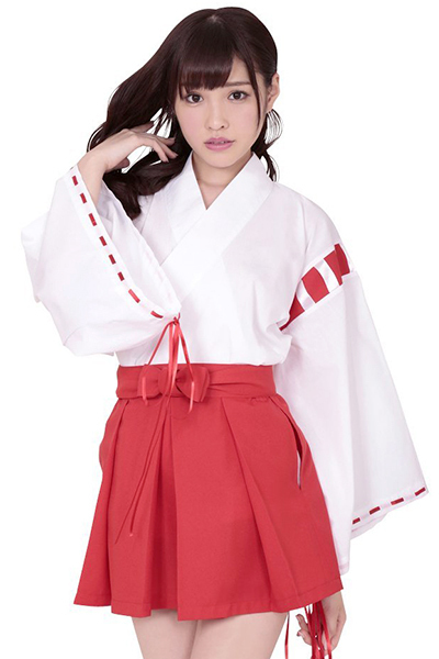 袴風にアレンジされたミニスカートが可愛いらしい巫女さん衣装で、あなたも夢のなかの巫女ちゃまに大変身!