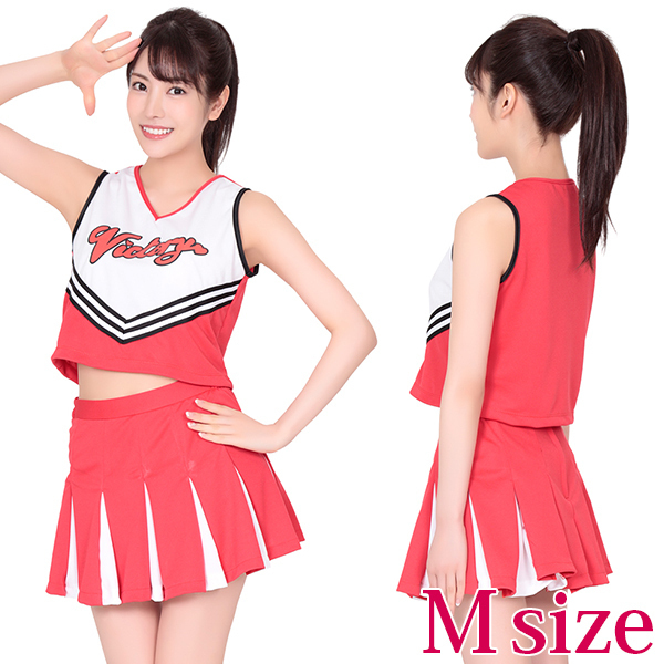 青空の下、元気いっぱいに応援!フロント部分に「VICTORY」の文字プリントが入った、チアガールのコスプレ衣装。