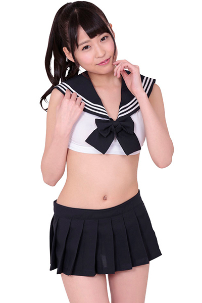 肌を大胆に露出した、ヘソ出しスタイルがセクシーなネイビーカラーのセーラー服コスプレ。