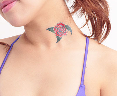 首すじ・胸元・腕・足首、アナタならどこに貼る?ただ一箇所に貼るだけでもセクシーに見せられる薔薇柄の本格的な刺青シールです。