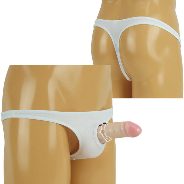 穴とリングで支えてしっかりサポート!パワーリング付きの男性用Tバックショーツ。
