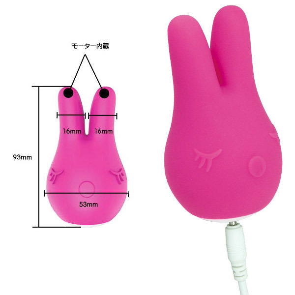 ●目を閉じた愛らしいフェイス●全長9.3cmのコンパクトサイズ●肌触りの良い高品質シリコン●両耳の先端それぞれにモーター搭載●6パターンのパワフル振動●お鼻のボタンを押す毎に振動切替●充電用のUSBケーブル付属。