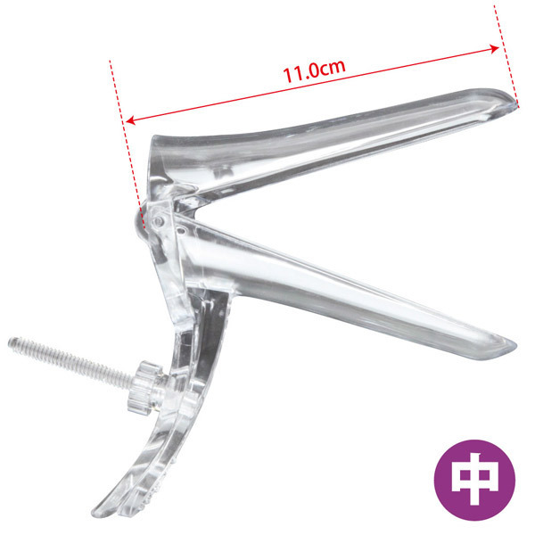 ●膣内観察用のクスコ(膣鏡)●挿入長110cmの中サイズ●可視性に優れたプラ系のクリア素材●お手軽な一回使い捨てタイプ●滅菌済みの個包装で衛生的●挿入後、開いたままネジで固定も可。