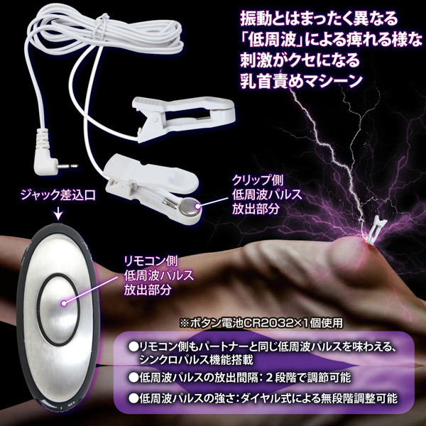 リモコン側にもパルスが発生するシンクロパルス機能を搭載し、パートナーと快感を共有することも可能!乳首をいじめ抜く癖になるような強い快感刺激は、チクニー上級者の方にもお勧めです。