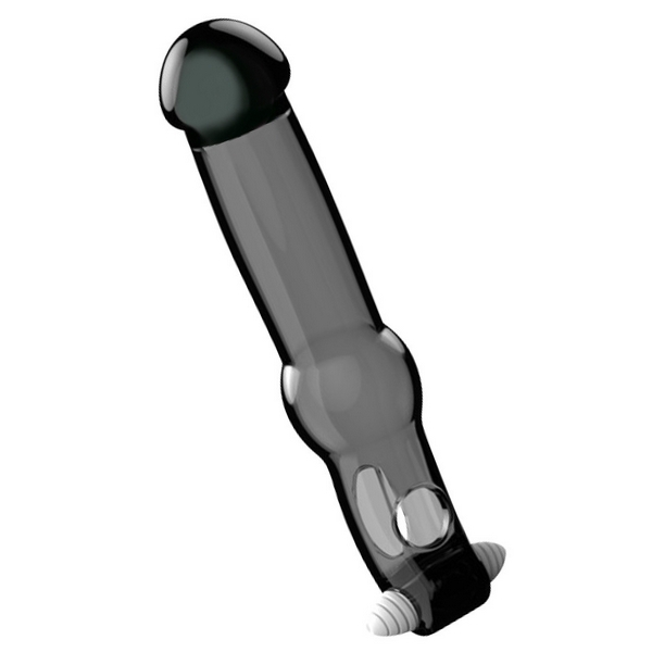 大きく膨らんだキノコ型ヘッドでロングに変身!極厚スキンで竿全体+玉袋をガッツリ締め付けて持久力を高めながら、振動快感も得られる男性補助グッズ。