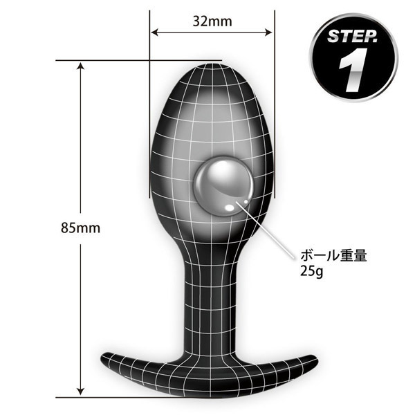 ●全長8.5cm×最大径3.2φcm●シリーズ最小ボディの「STEP1」●ストッパー付きのプラグ形状●安心安全な高品質シリコン素材●重さ25gのメタルボールを1個内蔵●自在に動いて存在感をアピール。