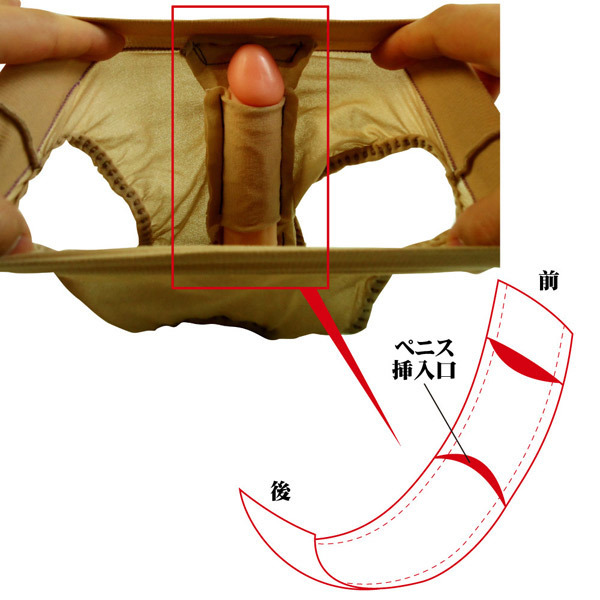 あなたの願望叶えます♪男女どちらにも固定可能な筒を内蔵!股間処理が簡単に出来るショーツ型のペニストッキング。