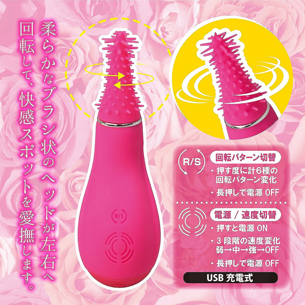 柔らかなシリコン製のドリルヘッドによるグリグリ回転責めと先端部分のやわらか触手が気持ち良い!3段階の回転速度調節や6パターンの回転機能を有するクリ&乳首攻責めに特化したドリルローターです♪先端部分のドリルブラシは左右にも回転するため快感スポットを愛撫しやすく、リバース回転もできるからパートナーとのプレイにも最適!操作も簡単で押す度に回転パターンが変化し、ボタンの長押しだけで電源のオフができるのであらゆるシーンにお使いいただけます♪USB充電式なのもポイントです。