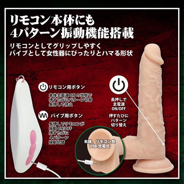 リアルなフォルム、肉感、人肌温度、さらにリモコンまで振動する多機能な「狂喜乱舞なディルド」は快感必至のリモコンバイブレーター!芯は硬めで皮は柔らかい2層構造。