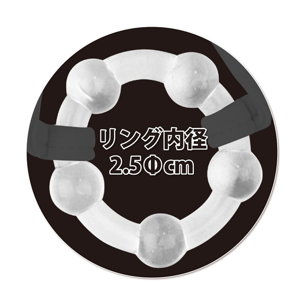 フロント部分の5つの球状イボ付きリングで根元を締め上げ夜をサポート!下半身を黒のVバックで飾りながら悩める男性の勃起力や持久力を補助します。