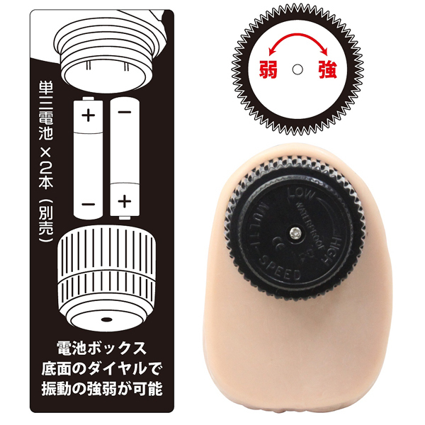 逞しく中折れしない硬質なボディ!強弱は回すだけのダイヤル式調整で初めてでも簡単に操作可能♪超激震を繰り出すハイパワー振動でGスポを責めに責めまくれ!電池式(単3電池を2本使用)