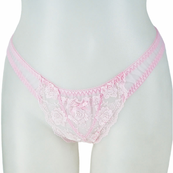 花柄の刺繍レースと透けて見える極薄生地で素肌を彩る日本製Tバック(ピンク)大きめ2Lサイズ。