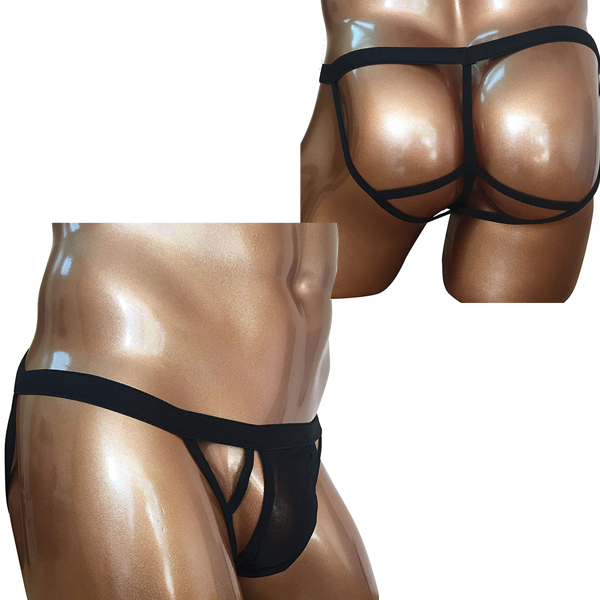 お洒落なデザインで男の象徴を美しく魅せるメンズ用Gストリング(黒)。