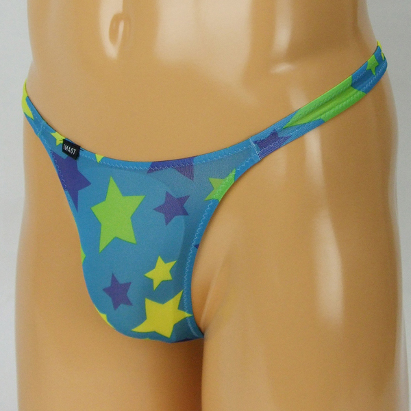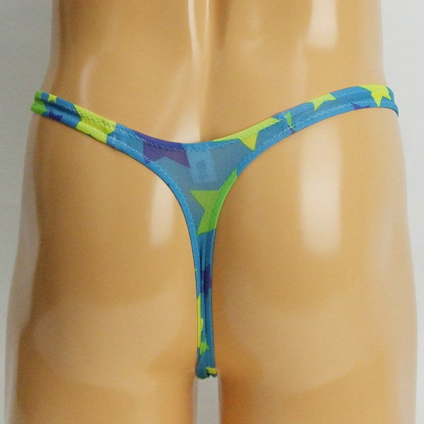 ポップなカラーリングと大きな星柄が目を惹く日本製のノーシームTバック(緑)。