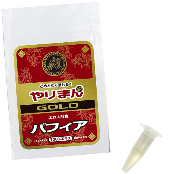 とめどなく溢れる「やりまんGOLD (パフィアエキス100%)」!他の飲み物の本品を入れて薄めてお飲み下さい。