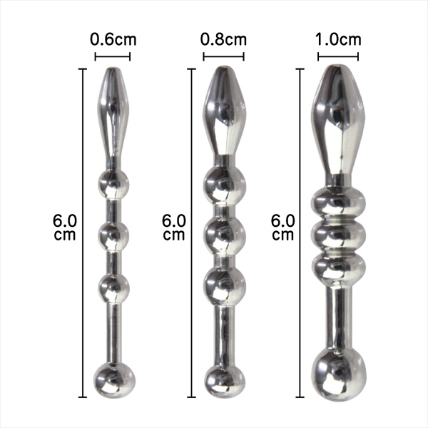 硬質なメタルボディが未知なる扉を開く!凹凸刺激か体感できるビーズタイプの尿道ブジー3点セット。