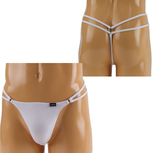 腰周りのダブルストリングデザインがお洒落な日本製のメンズ用Gスト(白)。