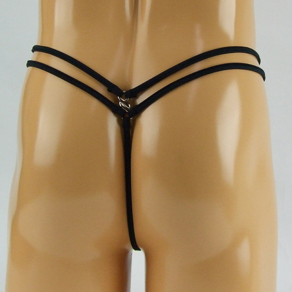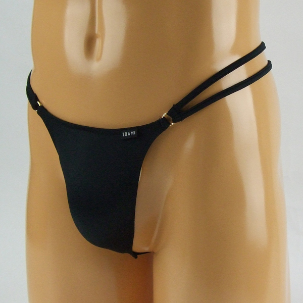 程よい露出とお洒落なダブルストリングデザインでセクシーな男を演出するハイレグ仕様のGスト(黒)。