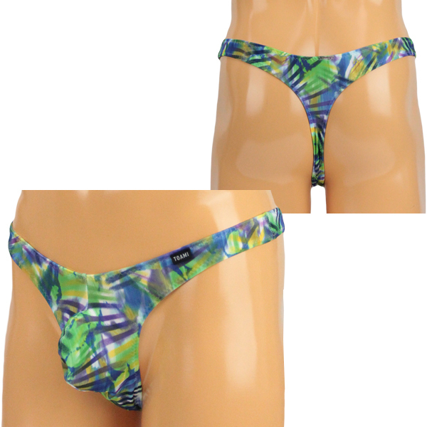 メンズ ストレッチ幾何学プリント柄もっこりTバック グリーン