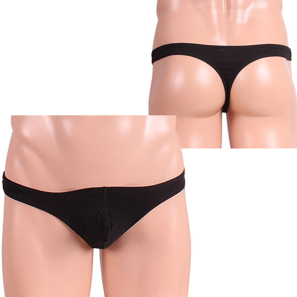 普段使いに最適なシンプル無地の男性用Tバック黒。
