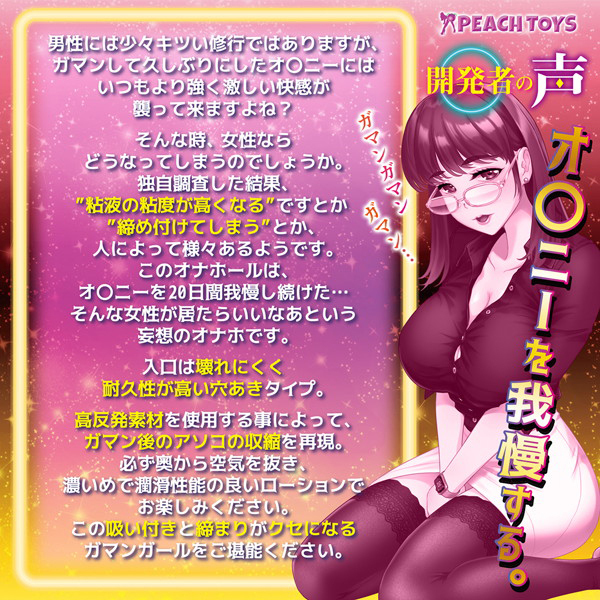 我慢を重ねた女性の膣内を再現した420gの肉厚オナホ。