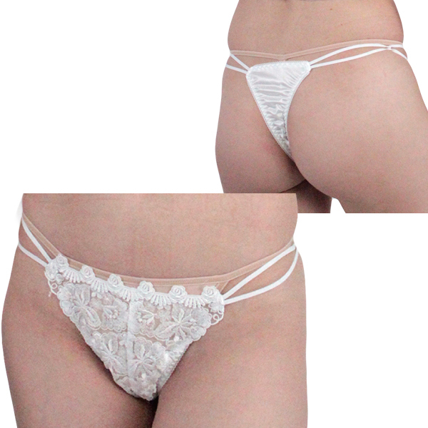 HOME > ランジェリー > ショーツ > 肌触りのいい光沢レース付き脇2本ゴムTバック ホワイト