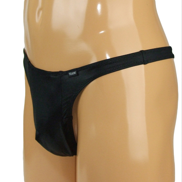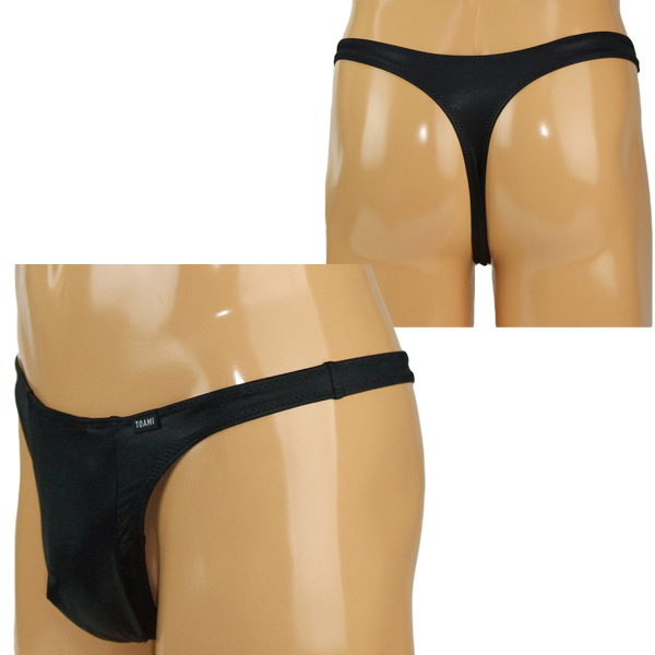 メンズ 光沢ストレッチ生地玉袋付きTバック Mブラック