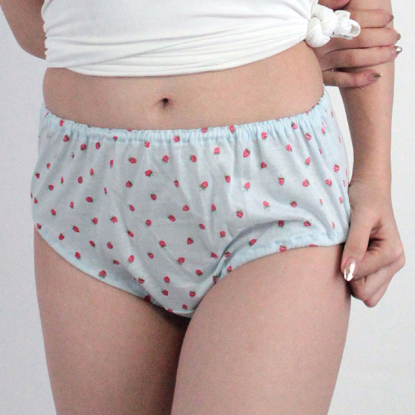 HOME > ランジェリー > ショーツ > 肌なじみの良いイチゴ柄コットン深履きショーツ サックス