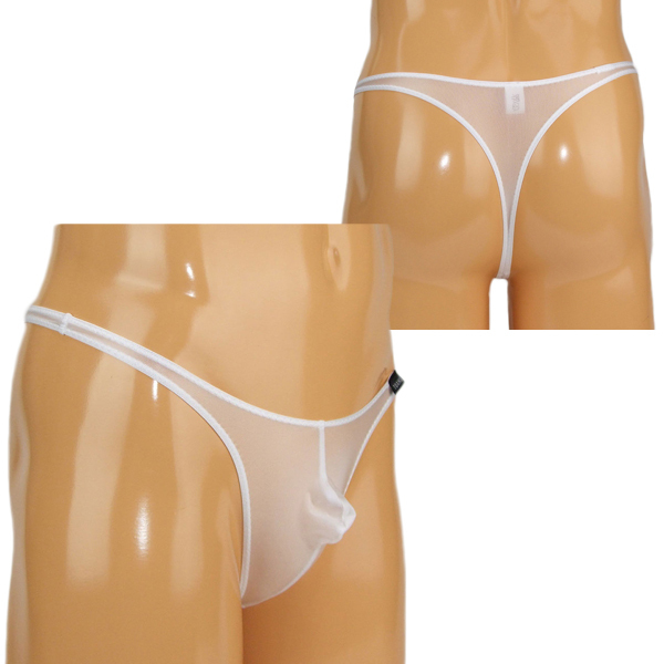 どこから見ても見えちゃう!男の象徴を曝け出す大胆なメンズ用シースルーTバック。