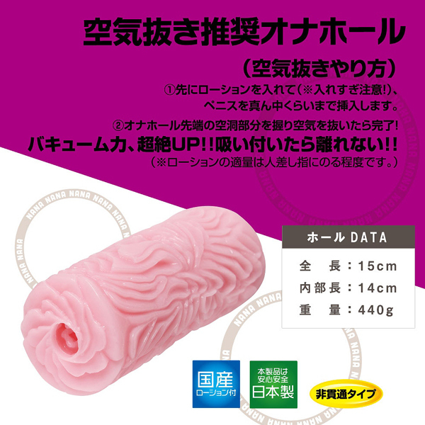 逆ヒダによるカリ刺激が特徴の「Nana(ナナ)Reverse(b29107)」がバキューム力を強化してさらに進化!全長15cm、内部長14cmの波打つ7連ヒダ構造の非貫通オナホ。