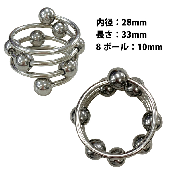 螺旋上に設置した8つのボールが適度な刺激を加えるペニスリング!自身はもちろんパートナーへの快感も高まります♪サイズは内径2.8cm、ボールサイズ1cm、長さは3.3cm仕様。