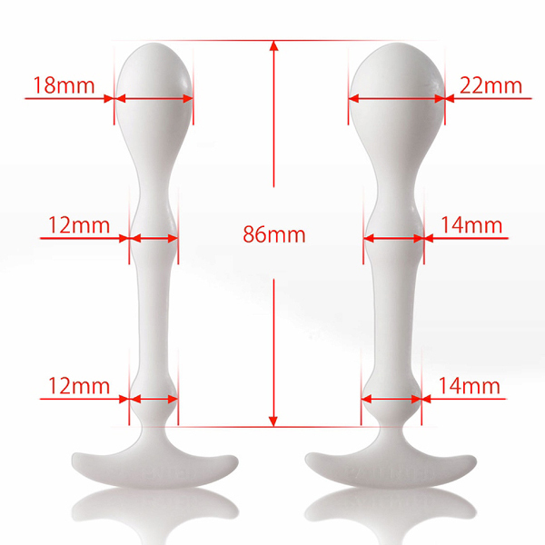 ●直腸刺激を重視したユニセックスモデル●安心の医療用非多孔性プラスチックを採用●全長は10.2cmと大・小共通サイズ●最大径は大:2.2cm、小:1.8cm。