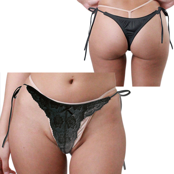 HOME > ランジェリー > ショーツ > 光沢生地にレース付き脇ヒモTバック Lサイズ ブラック