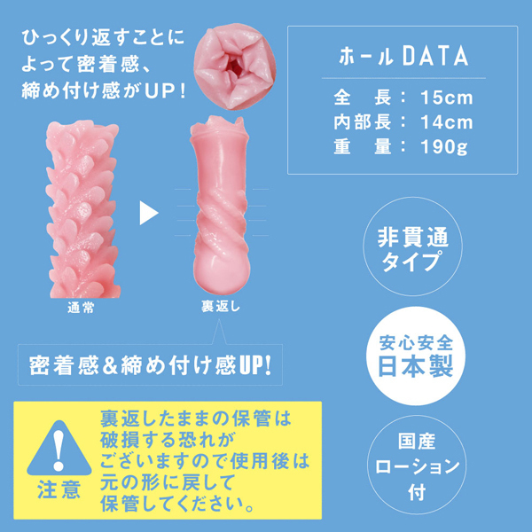 裏と表で違った刺激が味わえるリバースタイプ!ひっくり返すことで密着感&締め付け感がUPする♪素材はモチモチねっとり絡みつく元祖おなぺっと仕様。
