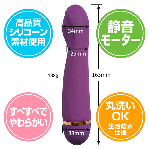 ぽっこりと丸みのある先端部分がGスポをピンポイントに刺激!しなりがあるためクリへ押し付けるようにもお使いいただけます。
