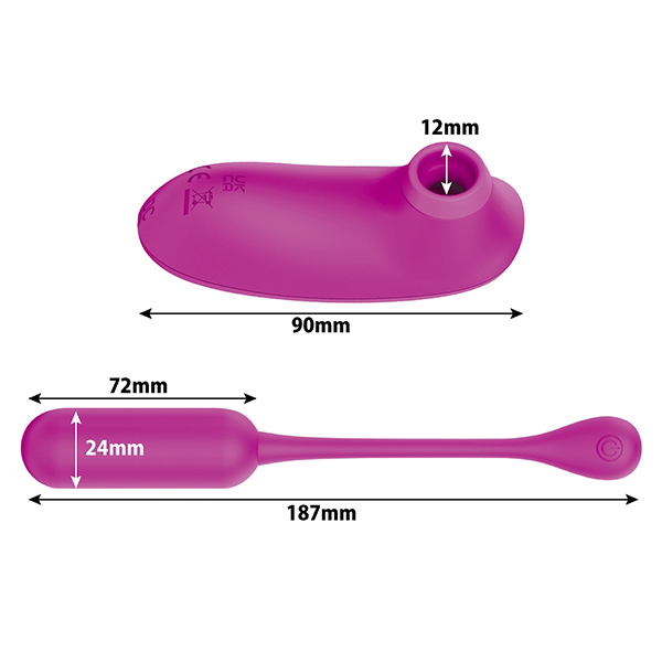 吸引ローターとの信号を受信して振動の変化を楽しめる装着型ローターがセットになった画期的な2wayセクシャルグッズ!空気圧で「吸引と吐息」を繰り返す吸引ローターとリモコン操作が可能な強力振動バイブで遠隔プレイも思いのまま♪クリ吸引機能は4パターンのプレスを内蔵し、バイブの方は12パターンの振動機能を内蔵!高品質なシリコン素材で生活防水。