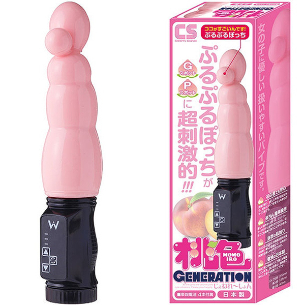 先端に取り付けられた丸いぽっちが気持ちいい!Gスポット・Pスポットを的確に刺激できる女の子に優しいバイブ「桃色ジェネレーション」です。