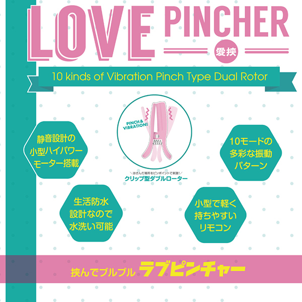 挟んで振動!ぶるぶる震えて多彩に楽しめる♪実力派の軽量ローター「ラブピンチャー」です。