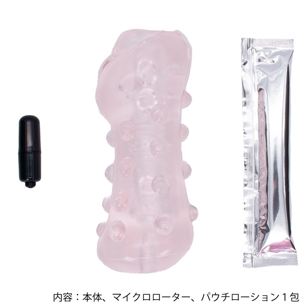快感・尿道タッチ!ソフトな柔弾力!入り口から大ぶりなイボがぷにぷに優しく刺激!中盤に細かい三角溝がゾロゾリと竿を撫で回す!そして奥はプチっと突起が尿道に優しくタッチ!最奥ポケットに付属のローターを差し込み、亀頭を刺激し気持ち良さ倍増!!!