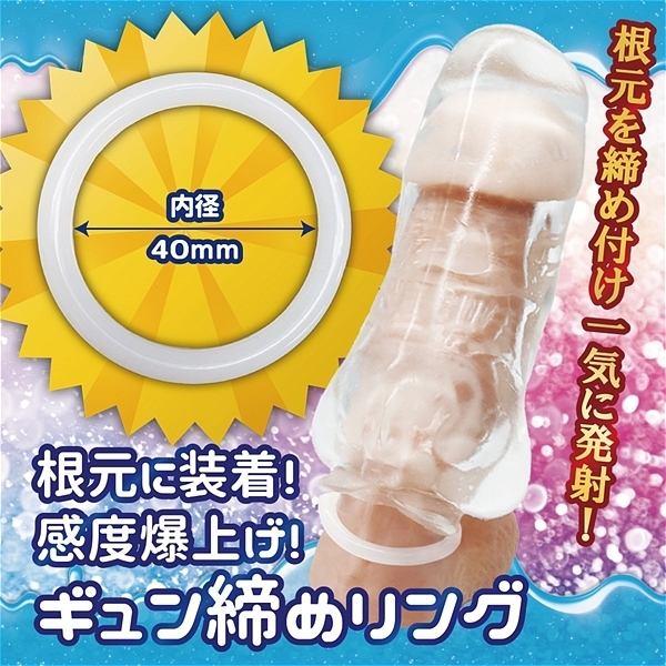 とろけるゼリーのようなホールと、ギュッと締めるリングの快感満点セット!とろけるやわもちホールと感度爆上げのギュン締めリング、さらにたっぷり楽しめるローションが付属。