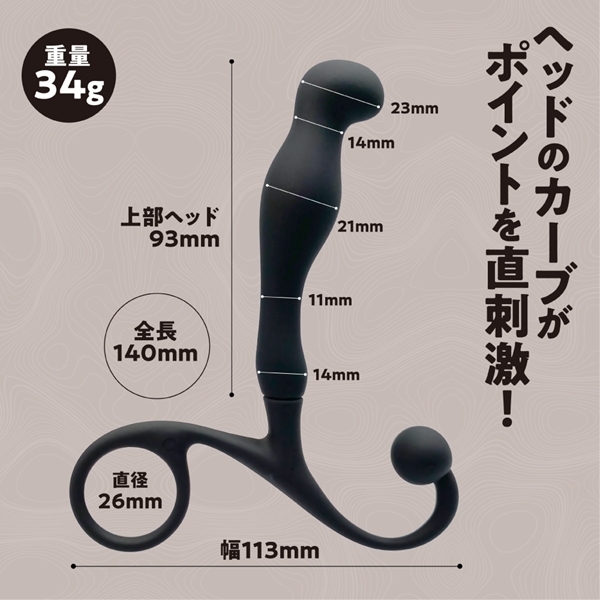 シリコン部全長140mm先端部が最大径の23mmとなり会陰ボールも搭載しています。