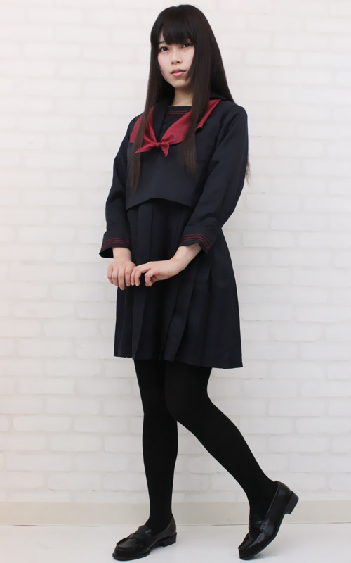赤のラインがキュート!珍しいジャンパースカートタイプのセーラー服(M)。