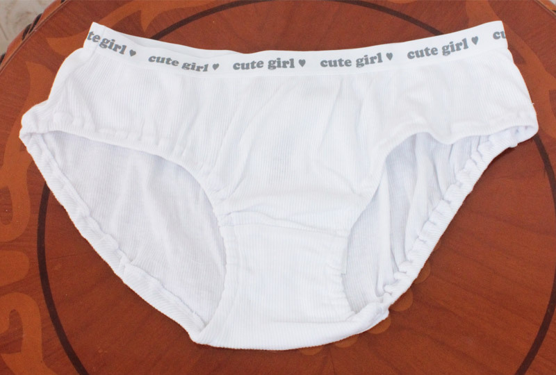 ピュアガールに変身!純白リブ編み仕様の綿パンツ単品(BIG)。