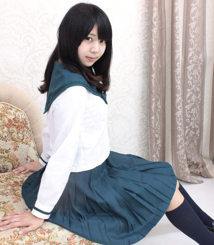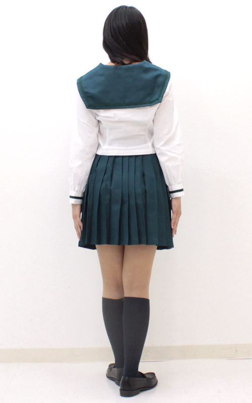 深く濃いグリーンが珍しくて人気!本物そっくりに仕上がった長袖セーラー服のコスチューム。