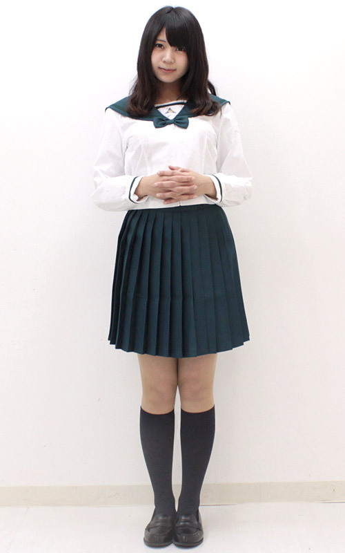 黒でも紺でもない落ち着いた緑色が新鮮!白い部分とのコントラストが映えるセーラー服。
