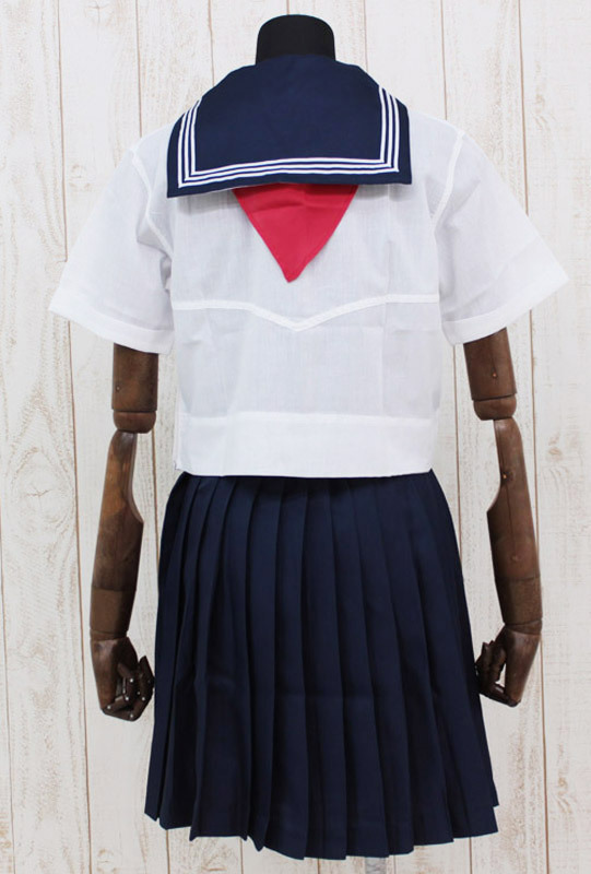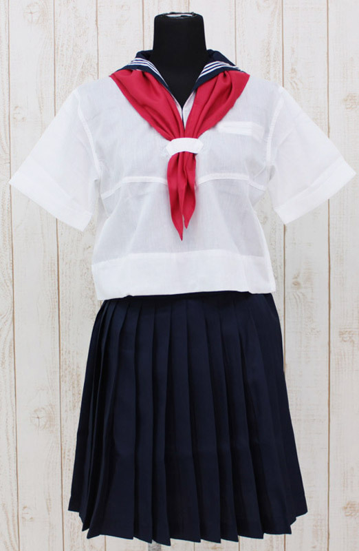 真っ赤なスカーフが抜群の存在感!定番のセーラー服カラーで仕上げた、学生服コスプレ(半袖)。