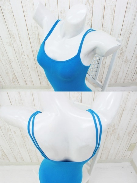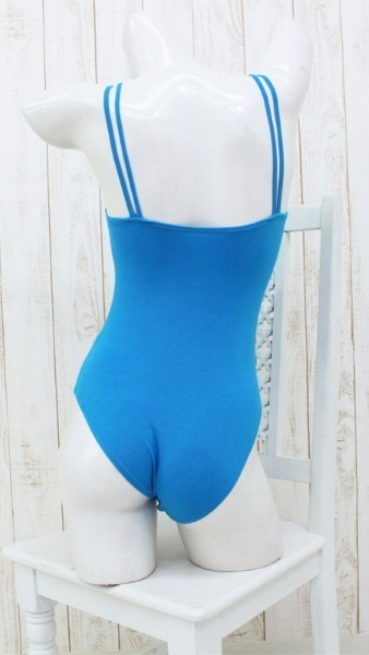 ●鮮やかな青空色レオタード●シンプルなキャミソールデザイン●肩紐はダブルストラップ仕様●胸部中央でシャーリング調節可●前面当て布仕様で安心。